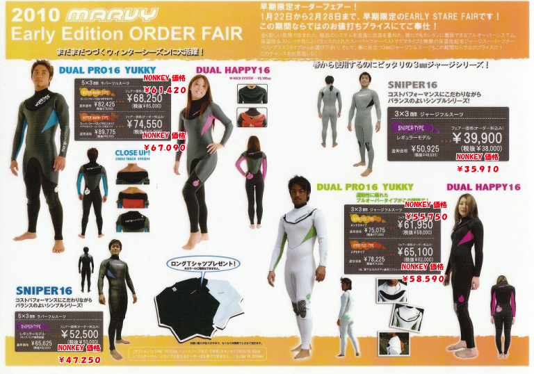 『DOVE WETSUITS』と同じく、今回も全モデルがNONKEY価格でオーダーできます。