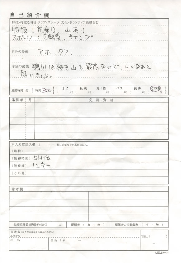 “履歴書在中?”