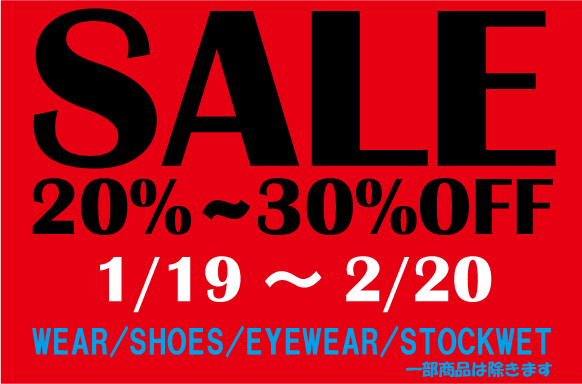 1月19日(土)~2月20日(水)までNONKEYではSALEを行っています!